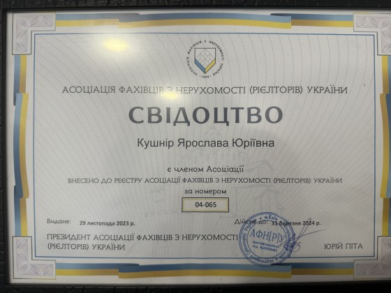 Ріелтор Кушнір Ярослава Юріївна не на сайті